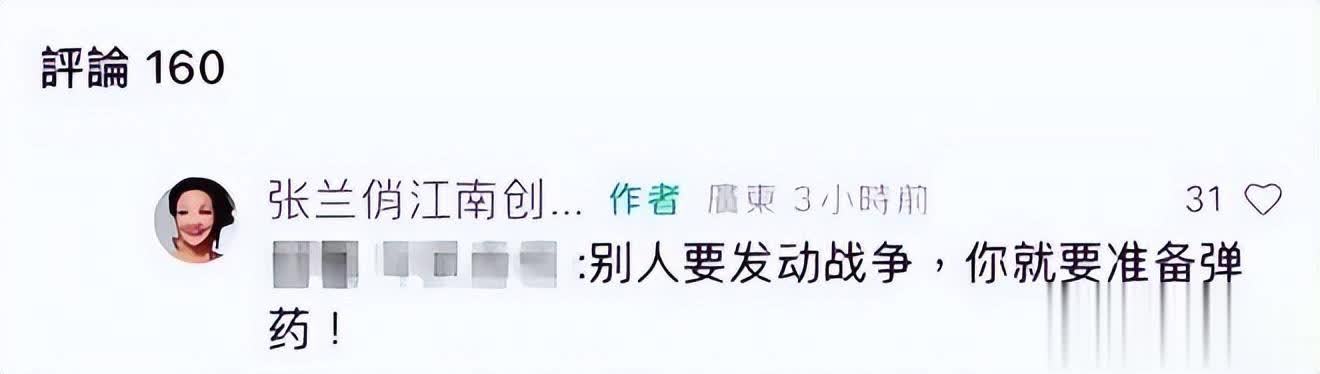 张兰留言“别人发动战争,你就要准备弹药!”疑似是在为和徐家人开战做准备。